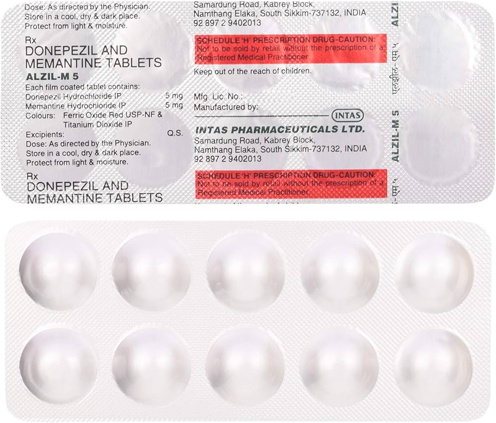 Alzil-M 5 Tablet is a prescription medicine used to treat Alzheimer’s disease. It helps to slow down the progression of moderate to severe Alzheimer’s by improving memory and thinking. It also increases the levels of a chemical messenger involved in the transmission of nerve signals.