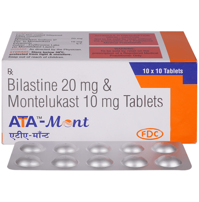 ATA MONT is a fixed dose combination medication that contains Montelukast Sodium and Bilastine. Montelukast Sodium is a leukotriene receptor antagonist that helps in the prevention and management of asthma symptoms and exercise-induced bronchoconstriction. Bilastine is a non-sedating antihistamine that provides relief from allergic rhinitis symptoms such as sneezing, itching, and nasal congestion. The combination of these two ingredients offers comprehensive relief from respiratory and allergic conditions. ATA MONT provides long-lasting relief without causing drowsiness.