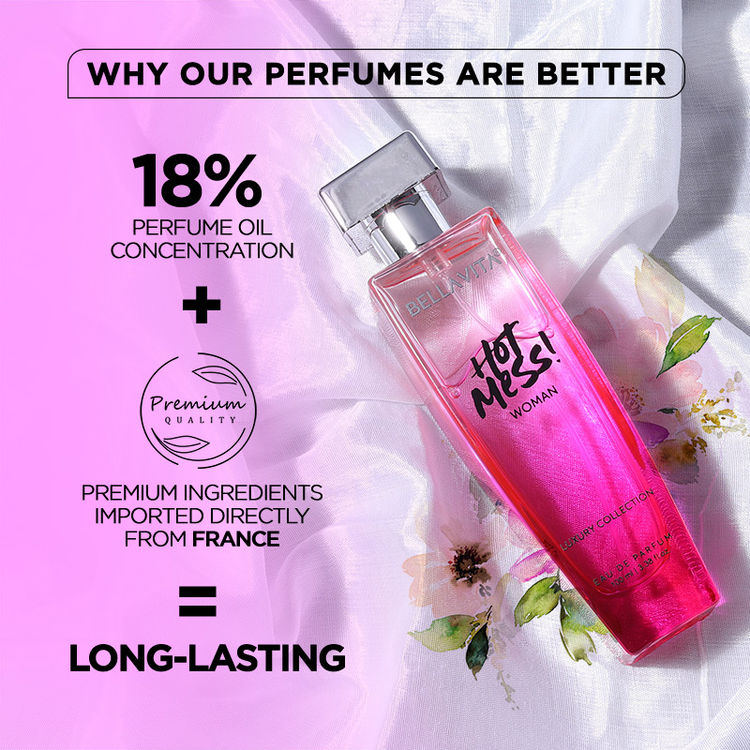 Description;Chaotic, crazy, but always Hot, the Bellavita Hot Mess is for the girls who get all the attention without trying at all. It gives a hot burst of citrus mandarin, the heart of exotic passionfruit, and the long-lasting passion of musk. It’s the best of floral, fruity, and heavy notes, perfect to give you confidence for that hot date!
