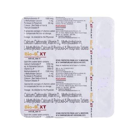 Bio-D3 XT Tablet is a combination medicine used to treat nutritional deficiencies. It is normally prescribed when your diet alone cannot provide the necessary supplements your body needs. It fulfills the deficiency to prevent related diseases. It also ensures proper growth and functioning of the body.