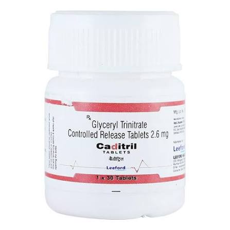 Caditril 2.6 Tablet CR is used to treat and prevent heart-related chest pain (angina). Angina occurs when the heart muscle is not getting enough blood. This medicine works by relaxing and widening blood vessels so blood can flow more easily to the heart.
