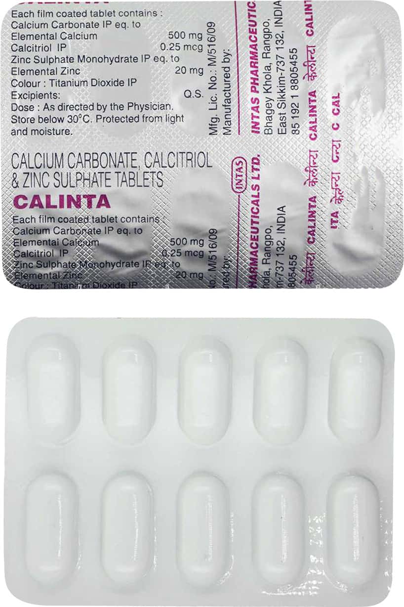 Calinta Tablet contains a unique blend of essential nutrients such as calcium carbonate, calcitriol, zinc sulfate monohydrate, and other excipients. This amazing tablet is designed to provide your body with the necessary nutrients that it needs to maintain healthy bones, teeth, and overall well-being. It helps maintain healthy teeth and gums, which is essential for good oral health.