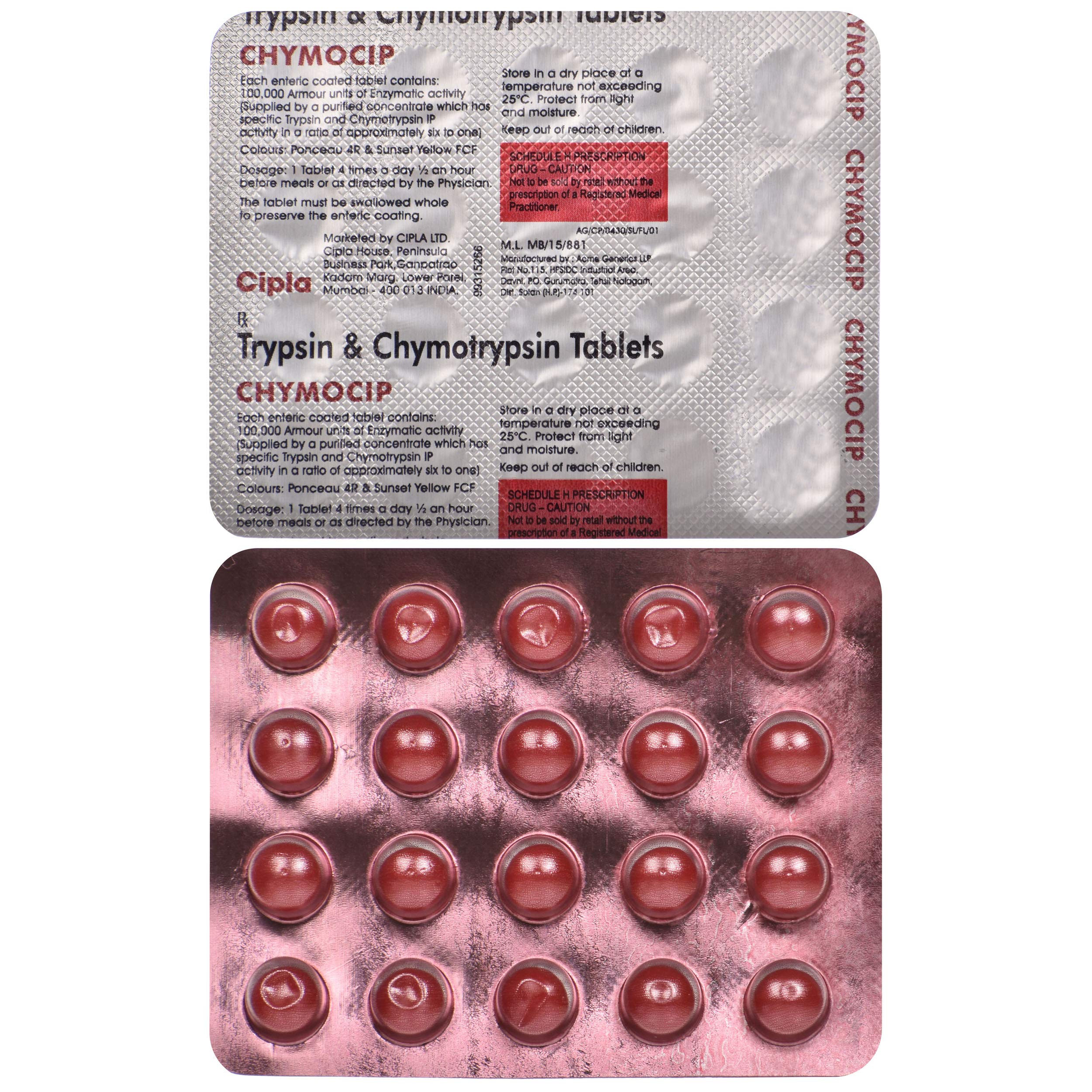 Chymocip Tablet is a medicine used in the treatment of pain and inflammation (swelling). It helps relieve pain and swelling in postoperative wounds and other inflammatory diseases.