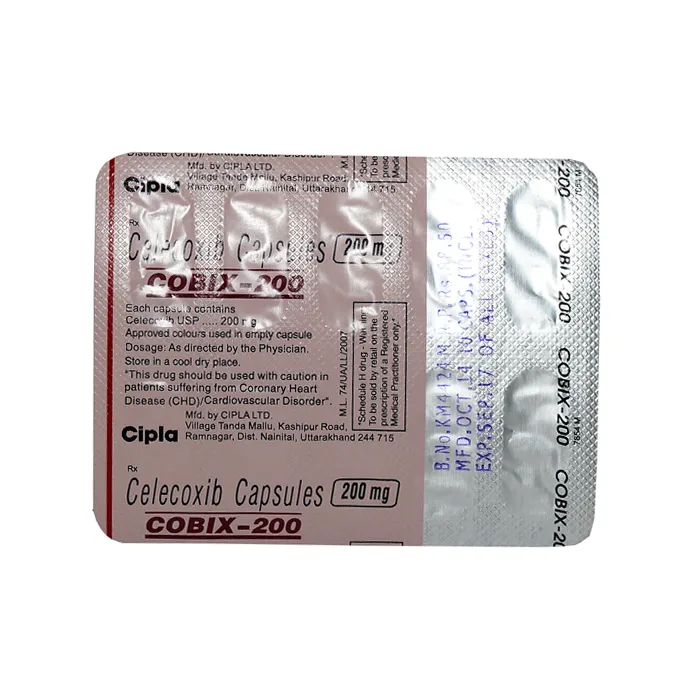 cOBix 200 Capsule is a pain-relieving medicine. It alleviates pain, redness, and swelling in conditions such as rheumatoid arthritis and osteoarthritis. It works by inhibiting the release of certain chemicals that cause pain and inflammation.