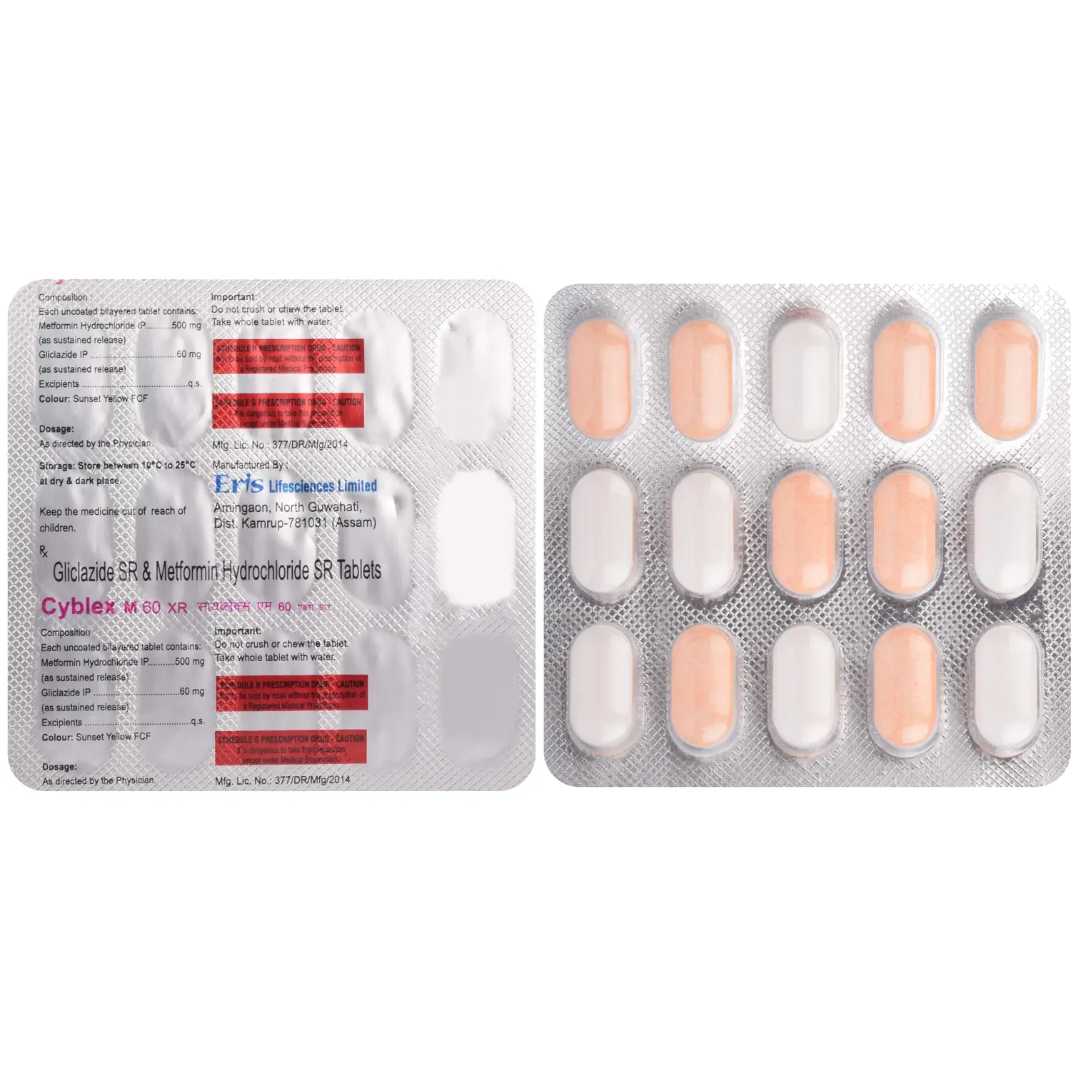 Cyblex M 60 XR Tablet belongs to a category of medicines known as anti-diabetic drugs. It is a combination of two medicines used to treat type 2 diabetes mellitus in adults. It helps control blood sugar levels in people with diabetes.