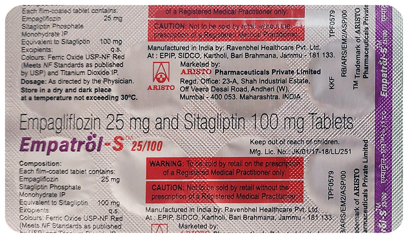 Empatrol-S 25/100 Tablet is a medicine used to treat type 2 diabetes. It lowers blood sugar by helping the kidneys remove excess sugar and by improving the body’s insulin response for better glucose control. It supports long-term diabetes management when combined with a healthy lifestyle.
