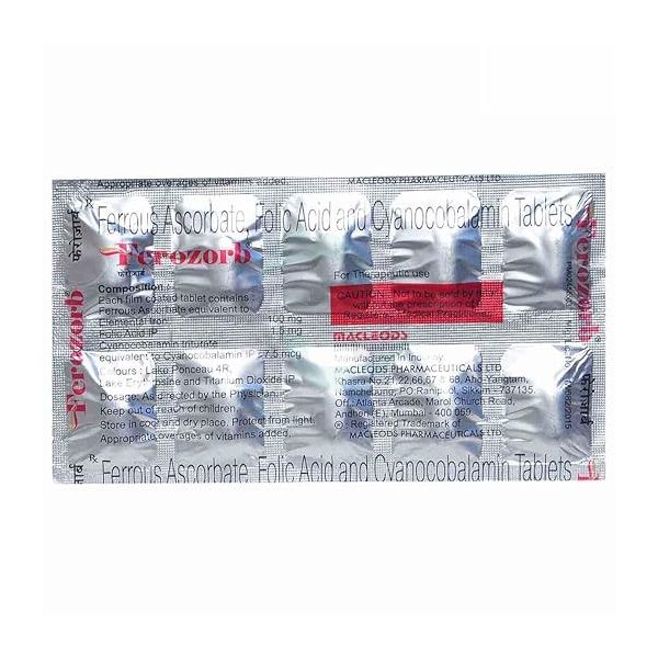 Ferozorb Tablet: Ferozorb Tablet contains ferrous ascorbate (iron) and folic acid (vitamin B9) as the prime ingredients. Folic acid is essential to numerous bodily functions ranging from nucleotide biosynthesis to the remethylation of homocysteine. It is especially important during periods of rapid cell division and growth. Infants require folic acid to produce healthy red blood cells and prevent anemia. Iron transports oxygen throughout the body and maintains red blood cells, thus making an individual feel energetic and preventing anemia.