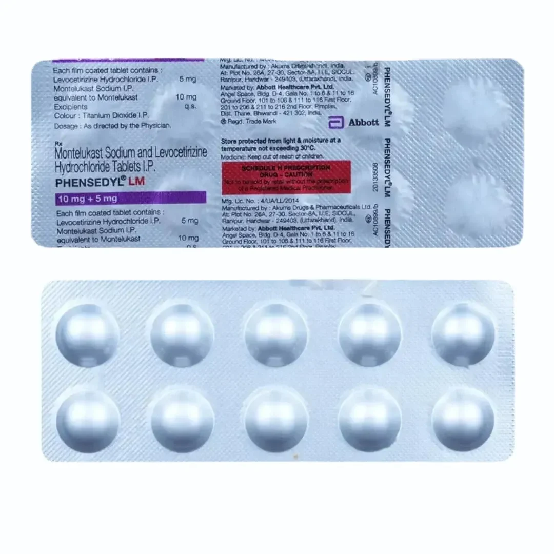 Phensedyl LM Tablet is a combination medicine used in the treatment of allergic symptoms such as runny nose, stuffy nose, sneezing, itching, swelling, watery eyes, and congestion or stuffiness. It also reduces inflammation in the airways and makes breathing easier.