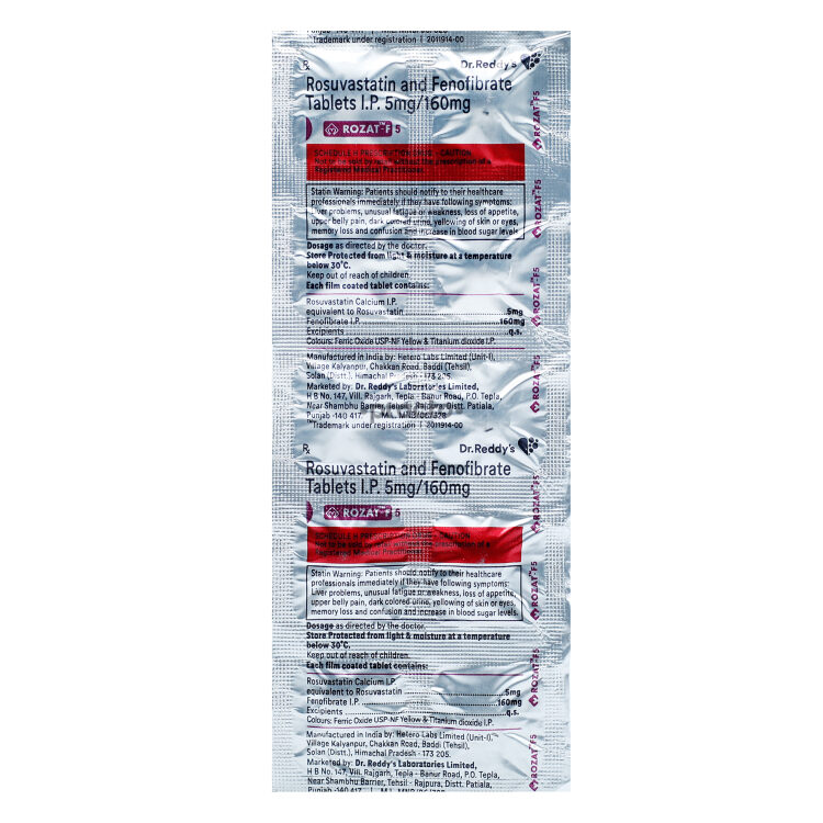 Rozat-F Tablet is a medicine used to lower elevated levels of lipids, specifically cholesterol and triglycerides, in the blood when lifestyle changes alone are not enough. This way it supports heart health and helps reduce the risk of serious cardiovascular problems such as heart attacks and strokes.