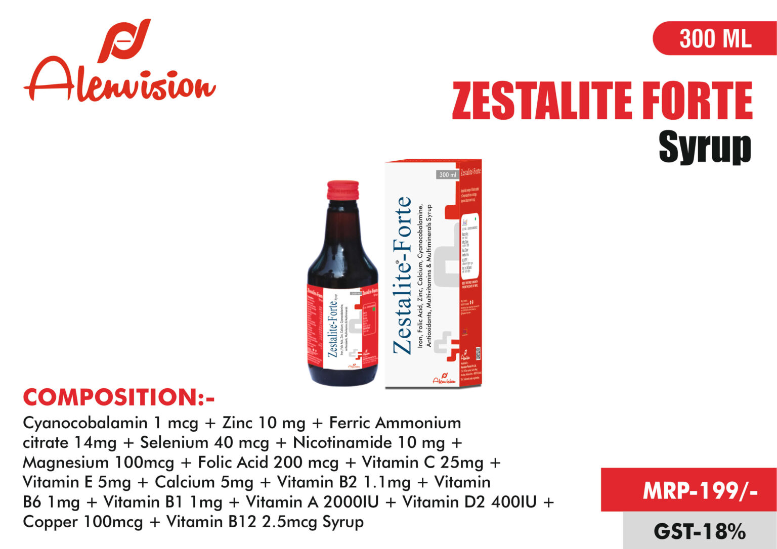 Composition : Cyanocobalamin 1 mcg + Zinc 10 mg + Ferric Ammonium citrate 14mg + Selenium 40 mcg + Nicotinamide 10 mg + Magnesium 100mcg + Folic Acid 200 mcg + Vitamin C 25mg + Vitamin E 5mg + Calcium 5mg + Vitamin B2 1.1mg + Vitamin B6 1mg + Vitamin B1 1mg + Vitamin A 2000IU + Vitamin D2 400IU + Copper 100mcg + Vitamin B12 2.5mcg Syrup